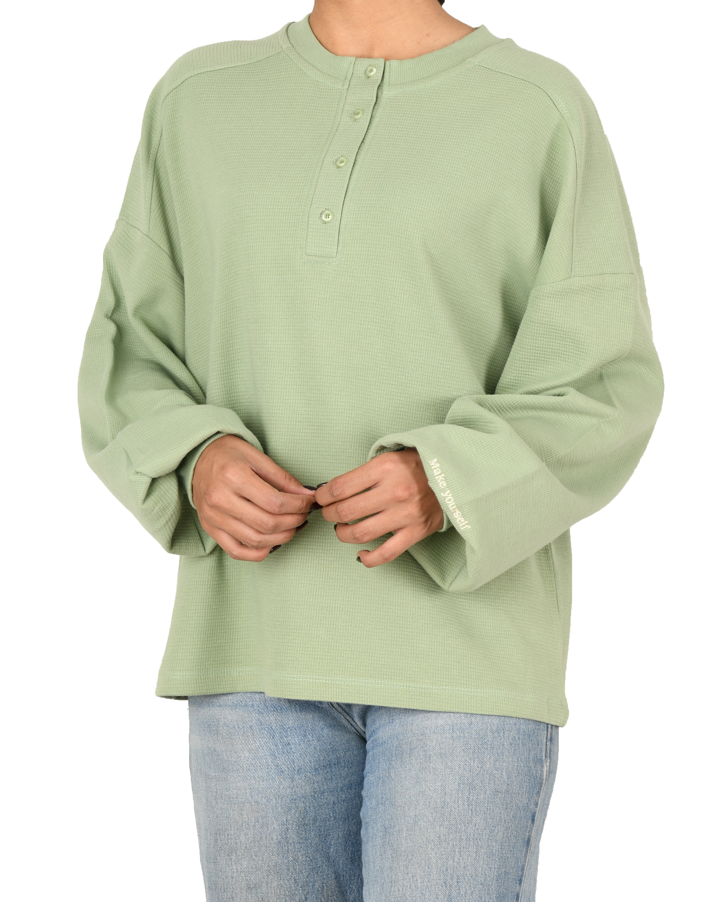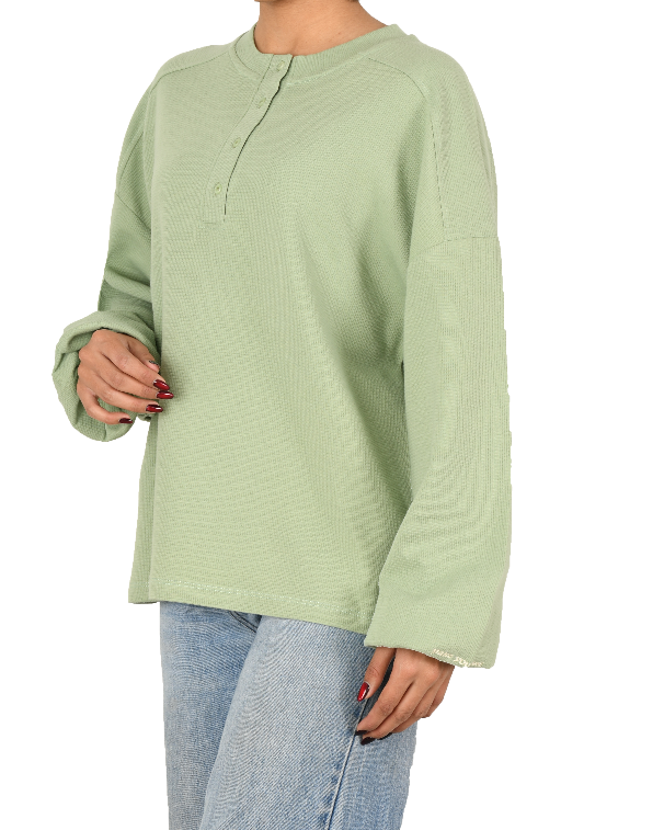 بلوز زنانه بیسکوییتی آستین گلدوزی