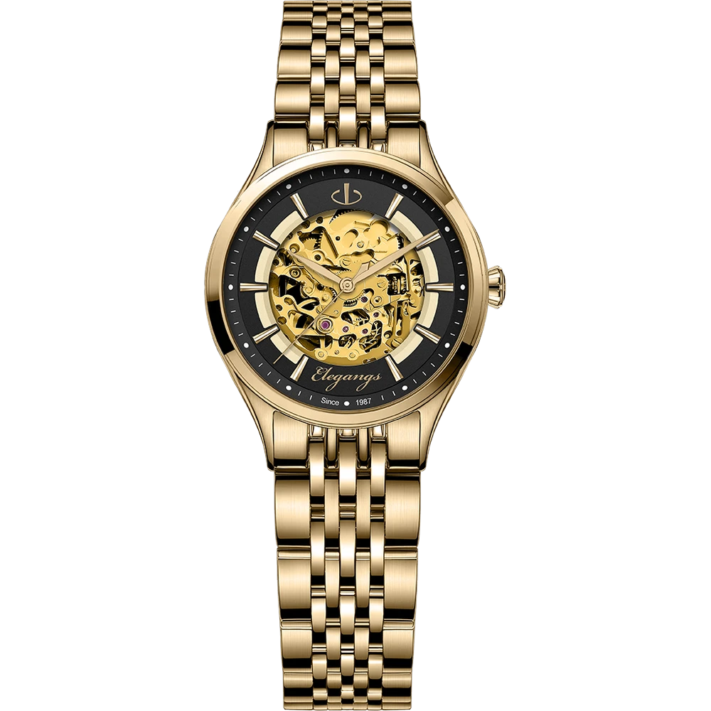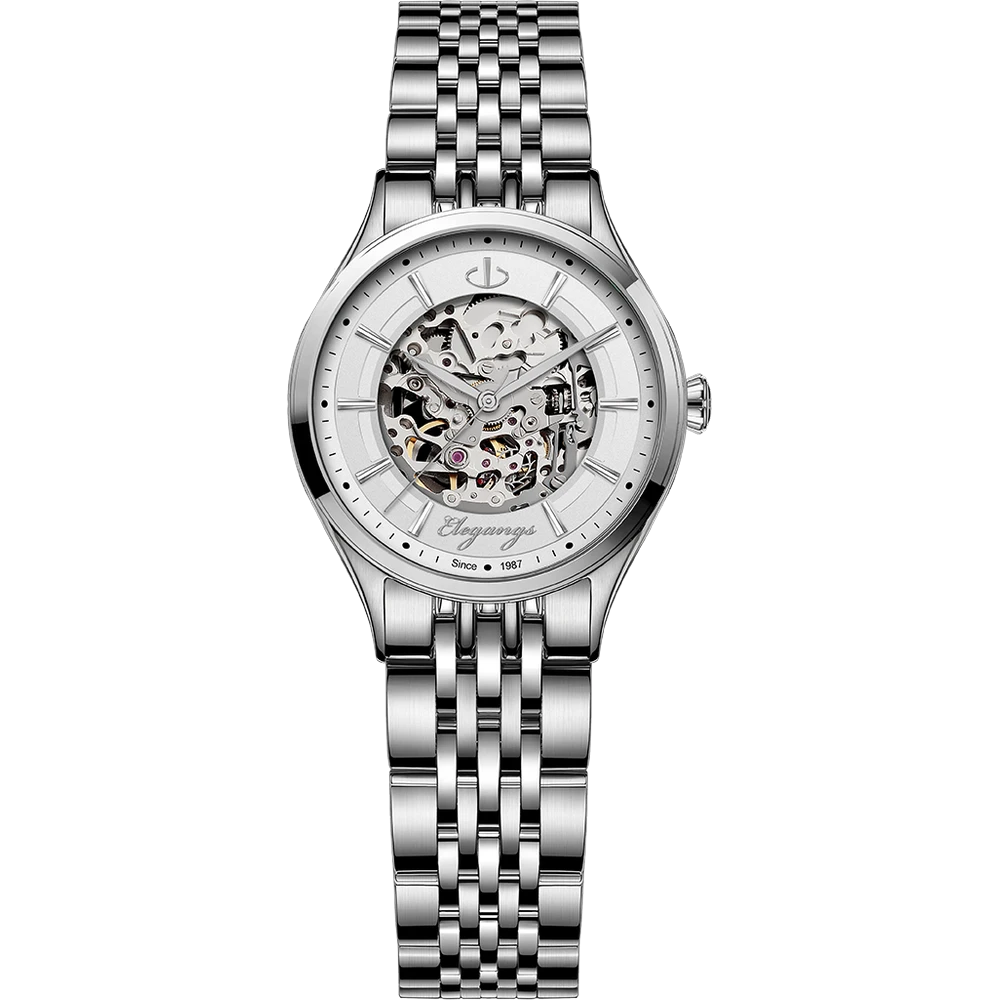 در هر بار تماشای ساعت الگنگس مدل SA8261 ، شما می توانید احساس ویژه ای را، همراه با تکنولوژی ساخت بالای ساعت های الگنگس و شوق و اشتیاق ما، برای تولید یک ساعت زیبا و خاص را درک نمایید. ما با افتخار مجموعه ای جدید از ساعت های الگنگس را با طراحی جدید و همچنین کیفیت منحصر به فرد تولید می کنیم تا مشتریان ما به جای یک نام تجاری دیگر ساعت های الگنگس را بخرند. ساعت الگنگس مدل SA8261 از سری ساعت های مردانه و زنانه اتوماتیک است که مخصوص بانوان تولید و عرضه شده است. ساعت الگنگس مدل SA8261 با بند استیل ضد حساسیت (آلرژی) 316 و تکنولوژی موتور میوتا ژاپن8N24 همراه با شیشه Sapphire (ضد خش) می باشد. سایز بند این مدل از ساعت الگنگس 18 mm و قطر قاب ساعت 34 mm است.